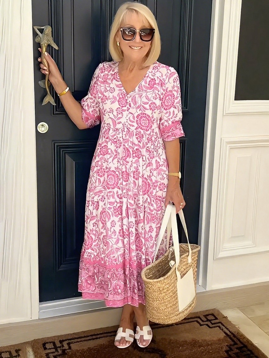 Boho Deep V Half Sleeve Dress Loose Floral Skirt Vacation Dress