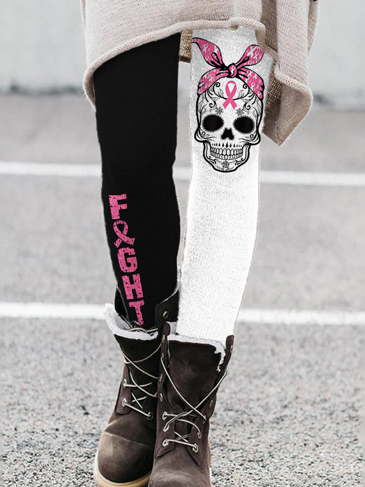 Fight Pink Ribbon Pink Skull Contrast Leggings