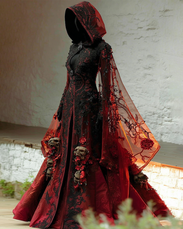 Halloween Themed Gradient Lace Skull Patchwork Dress 2de0