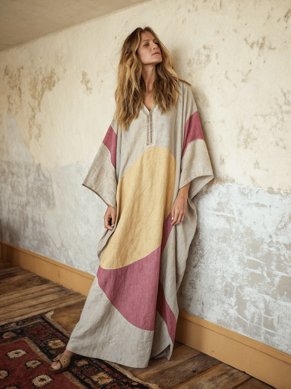 Linen Printed Kaftan Maxi Dress