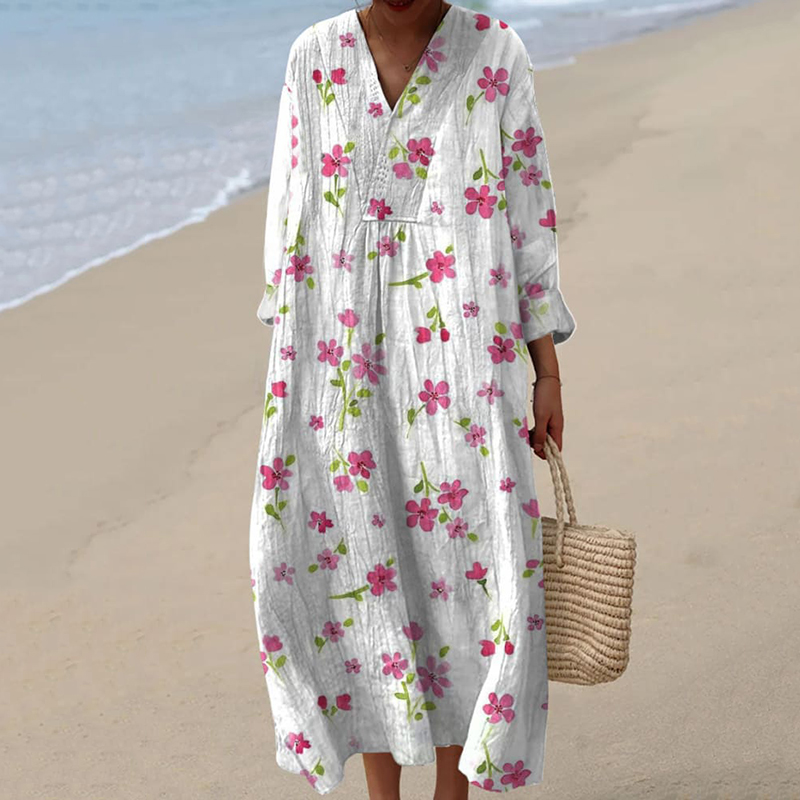 Vintage Floral Art Cotton Linen Comfy Maxi Dress