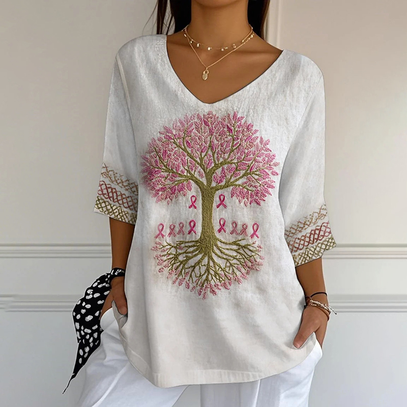 Women's Breast Cancer Consciousness Tree Of Life Webbing T-shirt