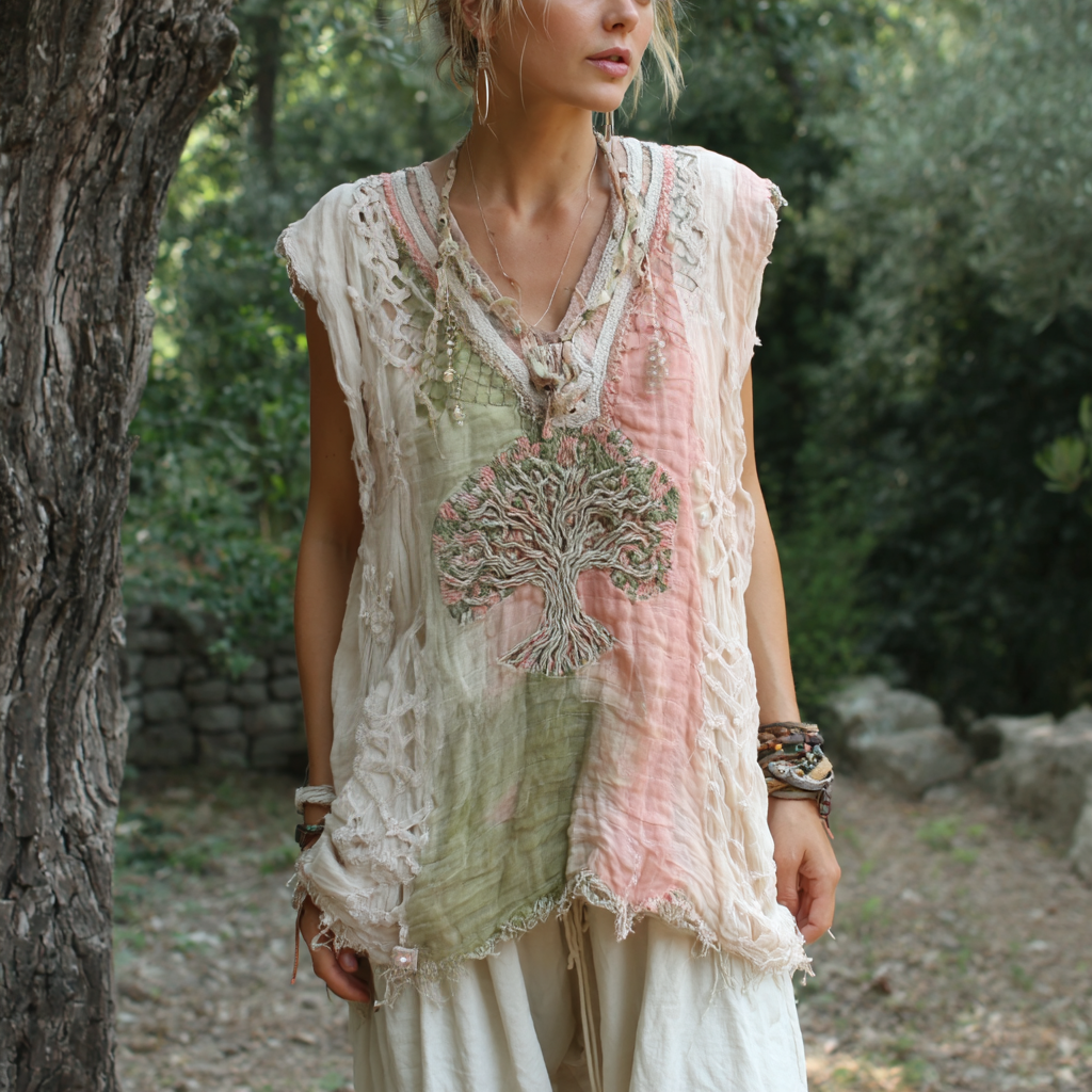 Women's Vintage Tree Of Life Color Block Sleeveless Top