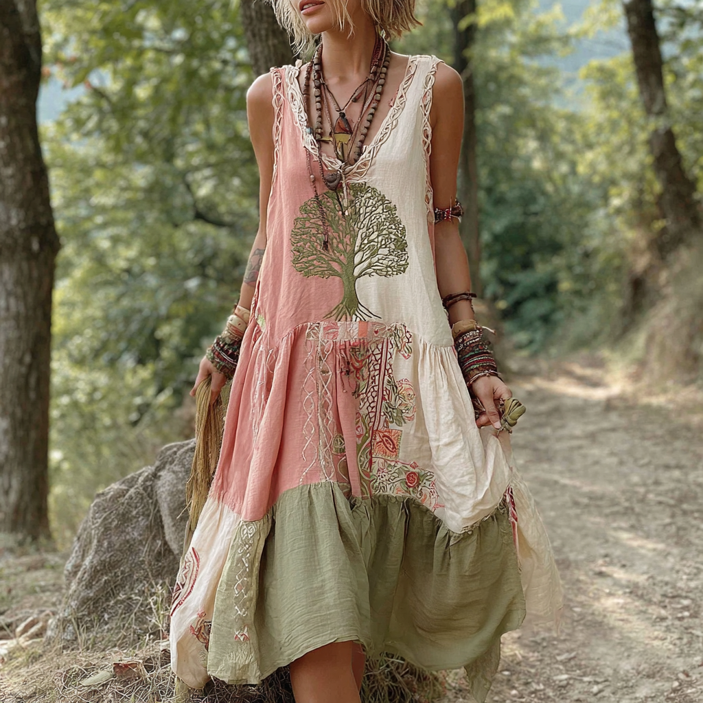 Women's Vintage Viking Tree Of Life V-neck Dress