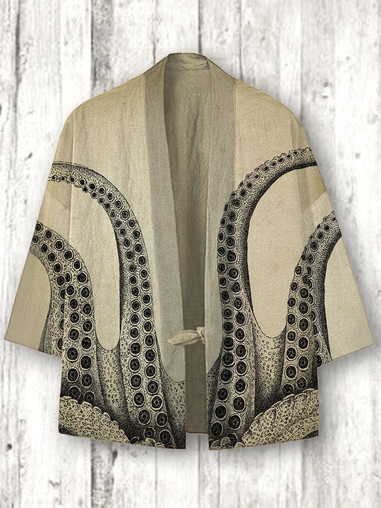 Ocean Octopus Japanese Art Linen Blend Kimono Cardigan