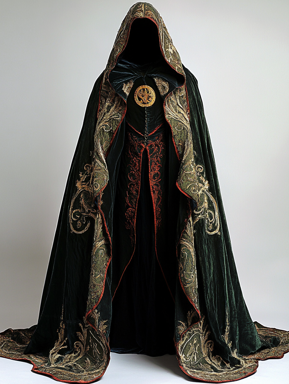 Ethnic dark magic badge distressed long wizard cape 4bf8