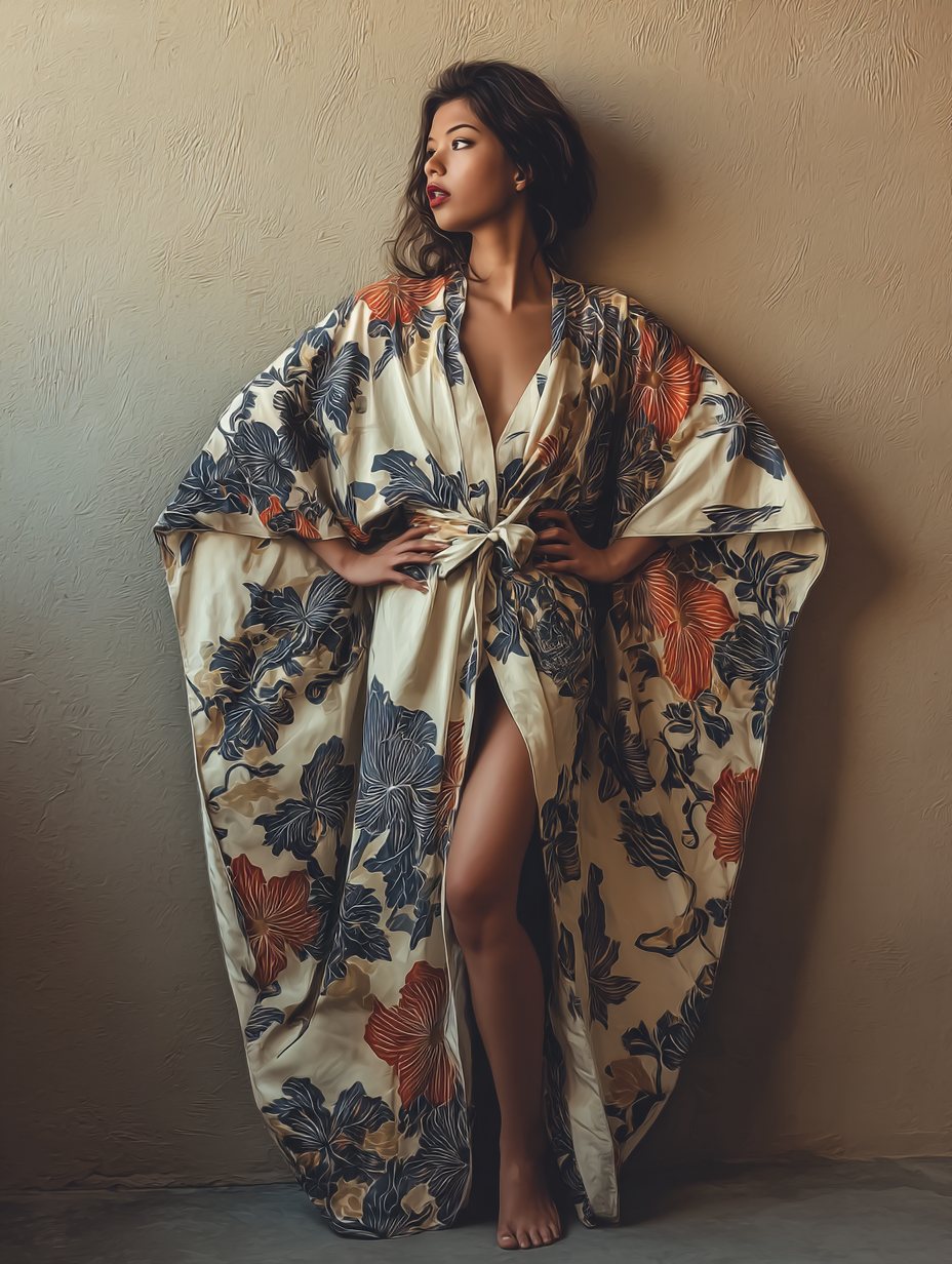 Women's Blue Iris Kimono Linen Robe (Including Belt)