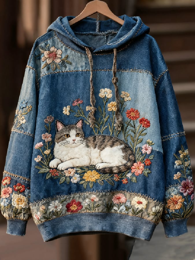 Women's Casual Patchwork Animal Print Hooded Sweatshirt