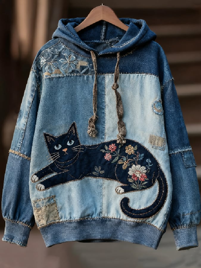 Women's Casual Patchwork Animal Print Hooded Sweatshirt