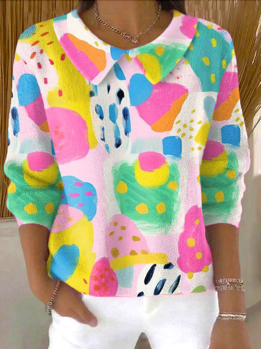 Women's Dessert Pattern Casual Peter Pan Collar 3/4 Sleeve Sweater