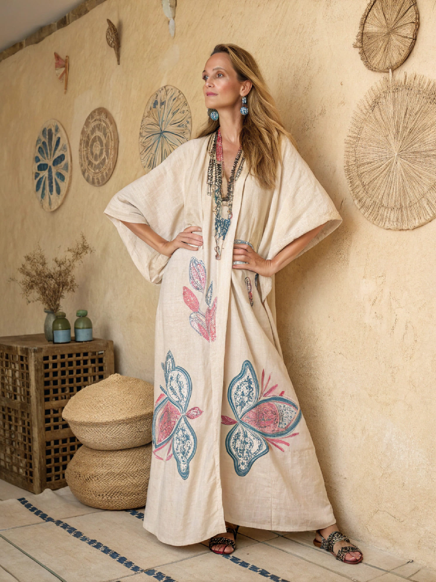 Women's Linen V-Neck Robe