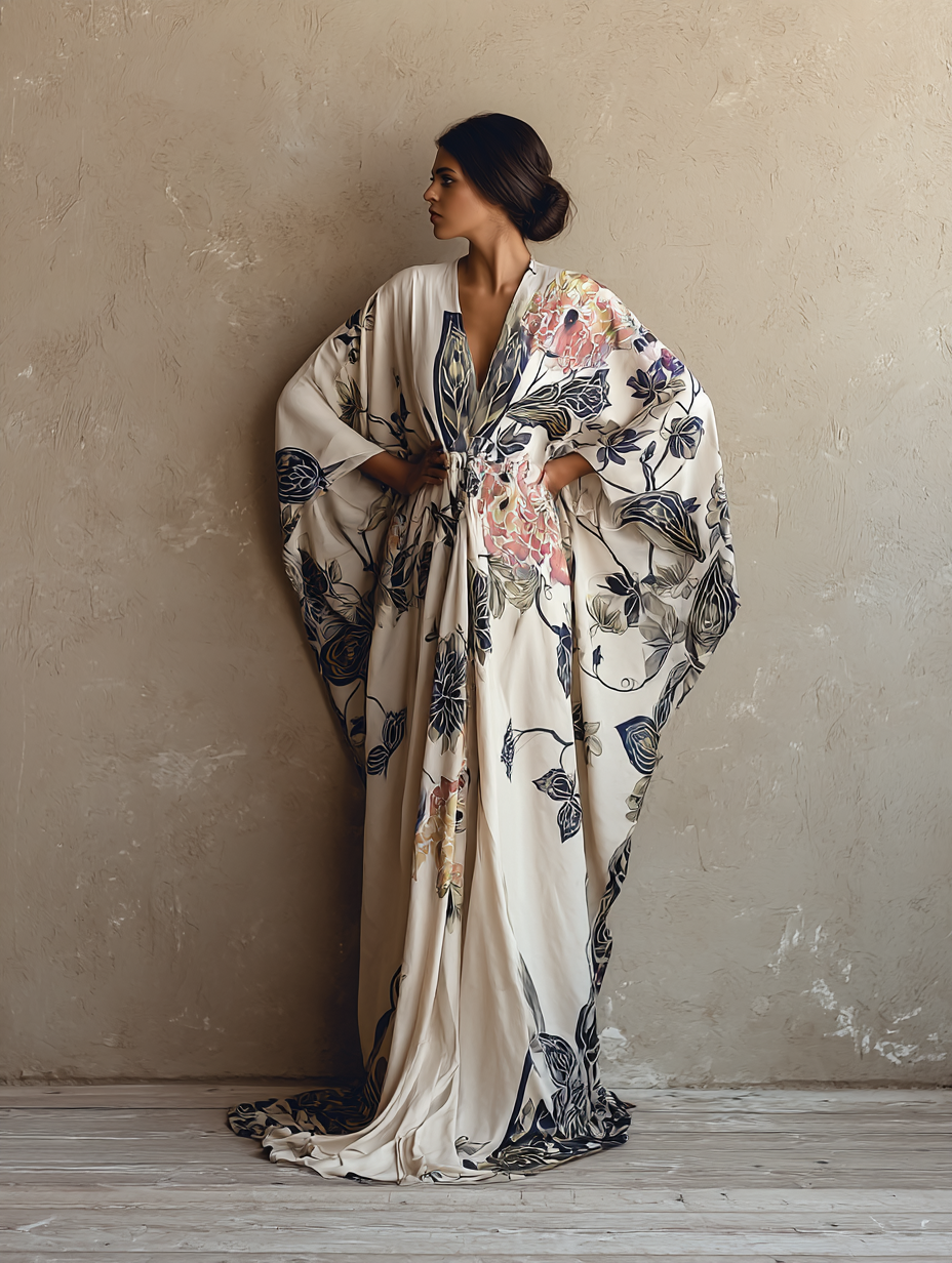 Women's Pink Peony Kimono Linen Robe (Including Belt)